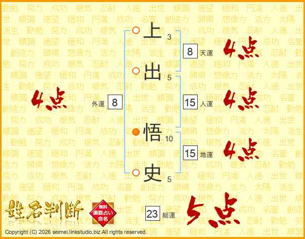 上出悟史さんの総運は23画の5点!