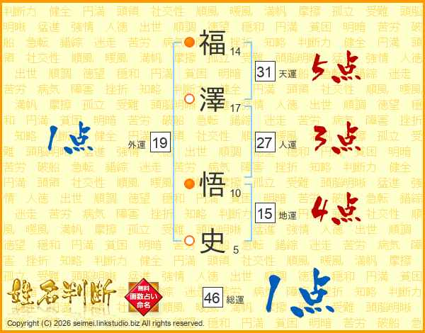 福澤悟史さんの総運は46画の1点!