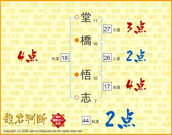 堂橋悟志さんの総運は44画の2点!