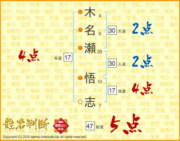 木名瀬悟志さんの総運は47画の5点!