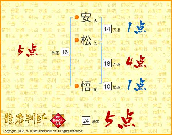 安松悟さんの総運は24画の5点!