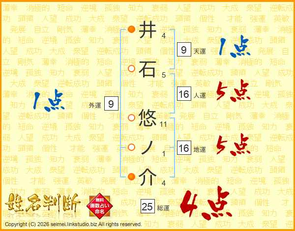 井石悠ノ介さんの総運は25画の4点!