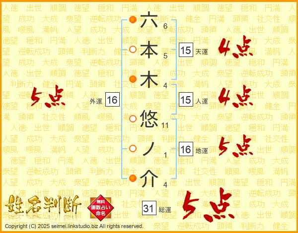 六(6画)本(5画)木(4画) 悠(11画)ノ(1画)介(4画)