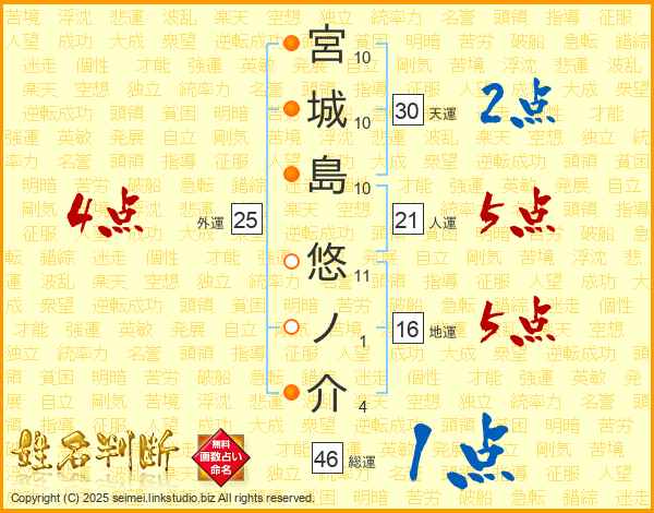 宮城島悠ノ介さんの総運は46画の1点!