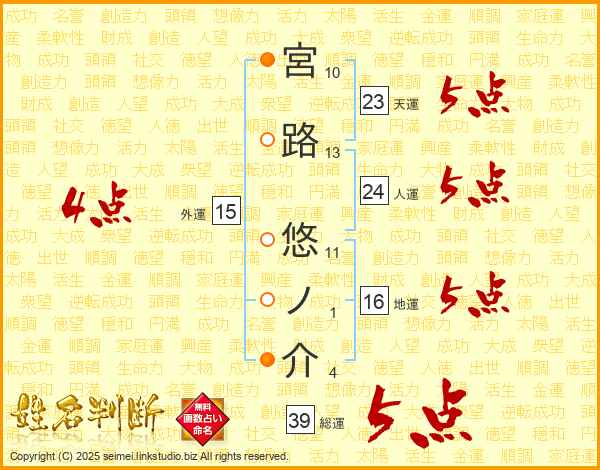 宮路悠ノ介さんの総運は39画の5点!