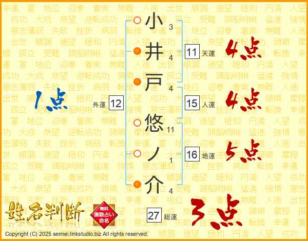 小(3画)井(4画)戸(4画) 悠(11画)ノ(1画)介(4画)