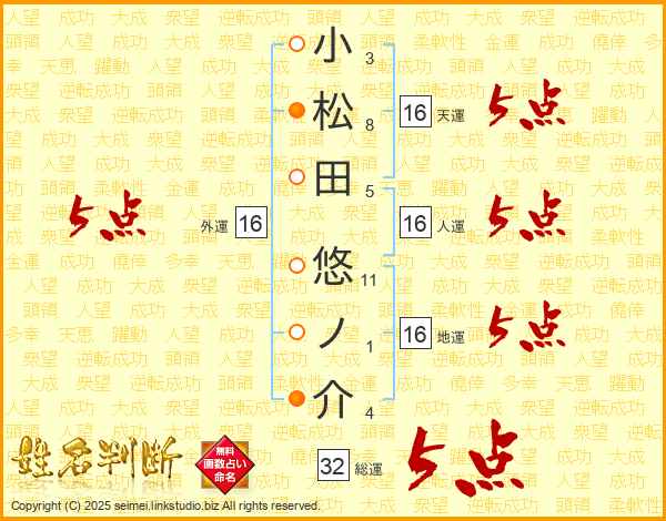 小(3画)松(8画)田(5画) 悠(11画)ノ(1画)介(4画)