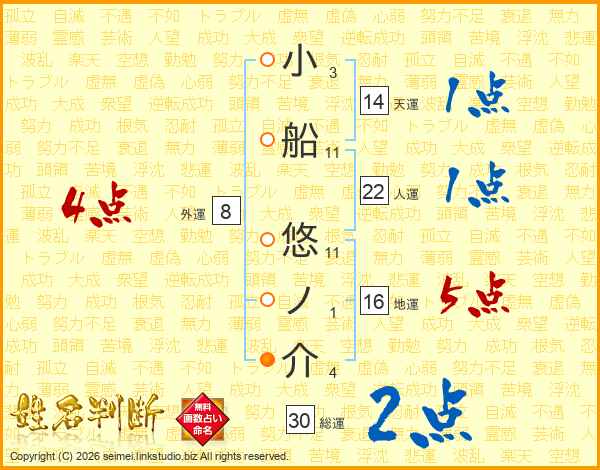 小船悠ノ介さんの総運は30画の2点!