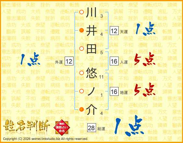 川井田悠ノ介さんの総運は28画の1点!