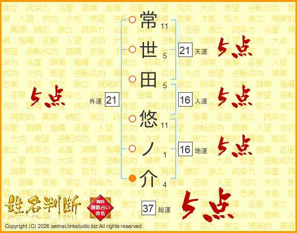 常世田悠ノ介さんの総運は37画の5点!