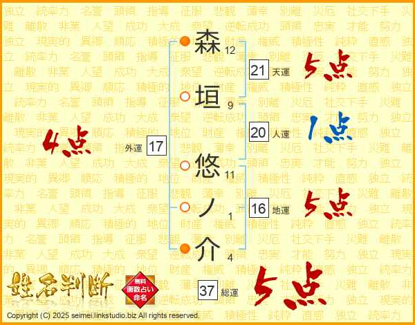 森垣悠ノ介さんの総運は37画の5点!