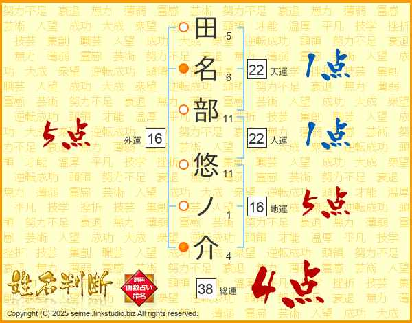 田(5画)名(6画)部(11画) 悠(11画)ノ(1画)介(4画)