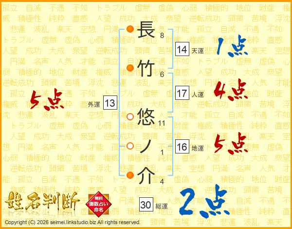 長竹悠ノ介さんの総運は30画の2点!