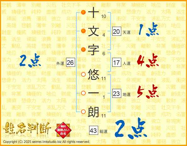 十文字悠一朗さんの総運は43画の2点!