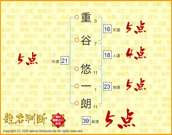 重谷悠一朗さんの総運は39画の5点!