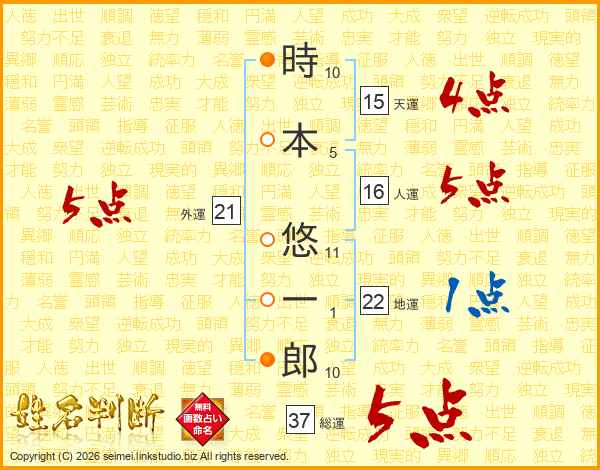時本悠一郎さんの総運は37画の5点!