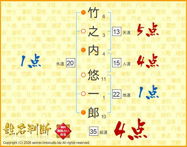 竹之内悠一郎さんの総運は35画の4点!