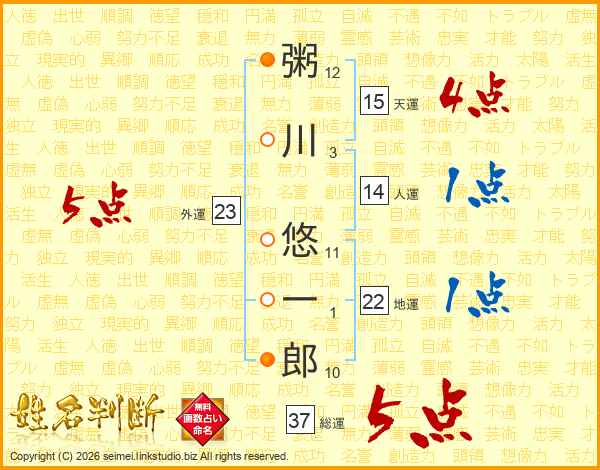 粥川悠一郎さんの総運は37画の5点!