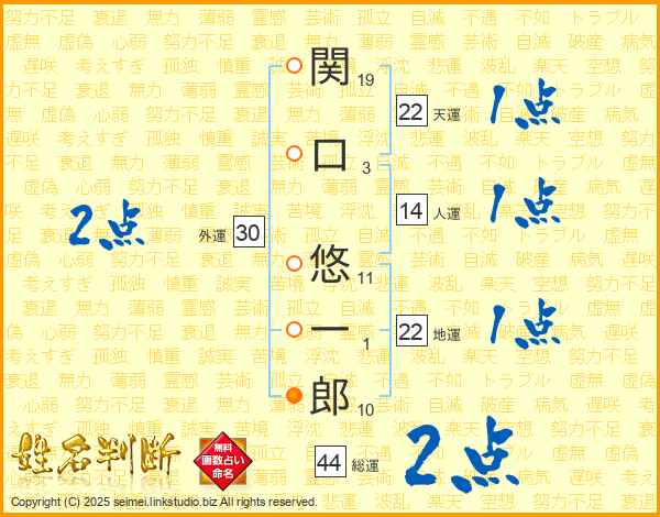 関口悠一郎さんの総運は44画の2点!