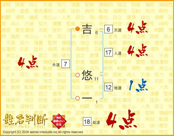 吉悠一さんの総運は18画の4点!