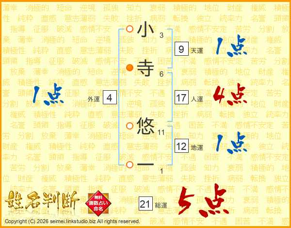 小寺悠一さんの総運は21画の5点!