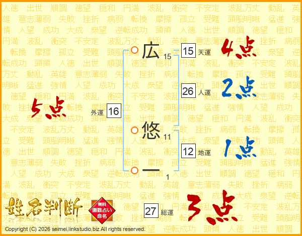 広悠一さんの総運は27画の3点!