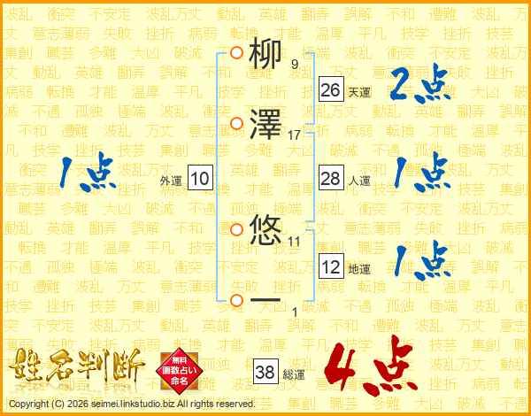 柳澤悠一さんの総運は38画の4点!