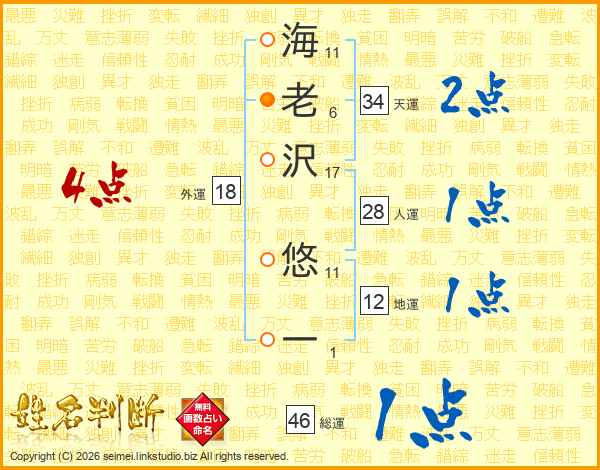 海老沢悠一さんの総運は46画の1点!