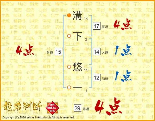 溝下悠一さんの総運は29画の4点!