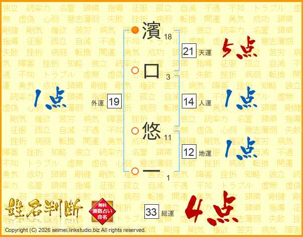 濱口悠一さんの総運は33画の4点!