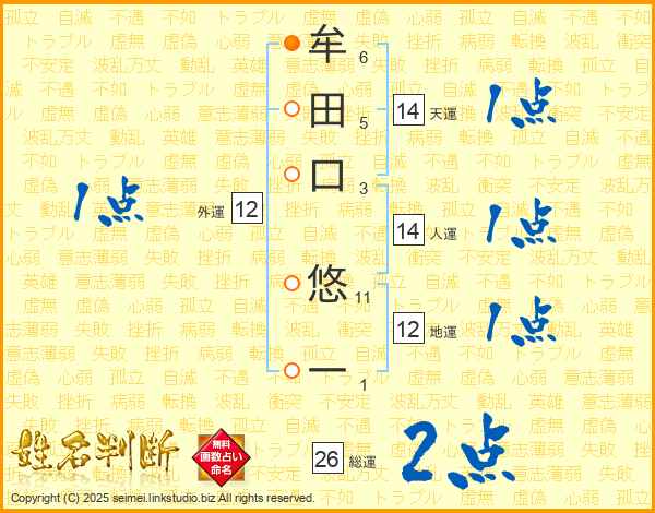 牟(6画)田(5画)口(3画) 悠(11画)一(1画)