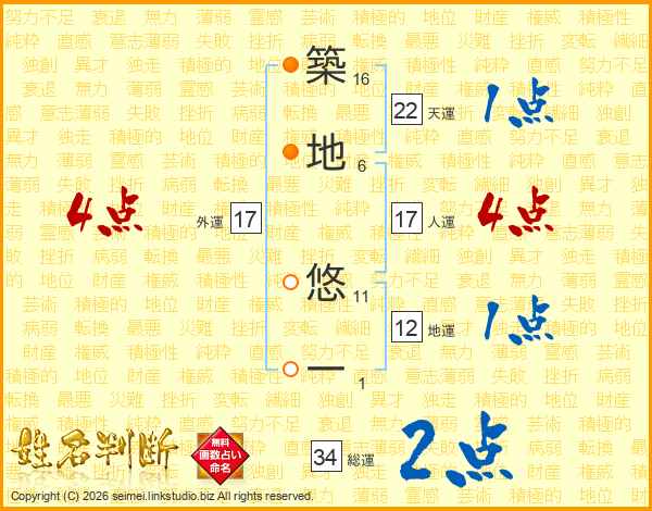 築地悠一さんの総運は34画の2点!