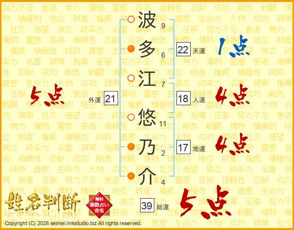 波多江悠乃介さんの総運は39画の5点!