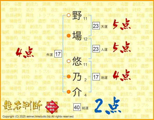 野場悠乃介さんの天運は23画の5点!