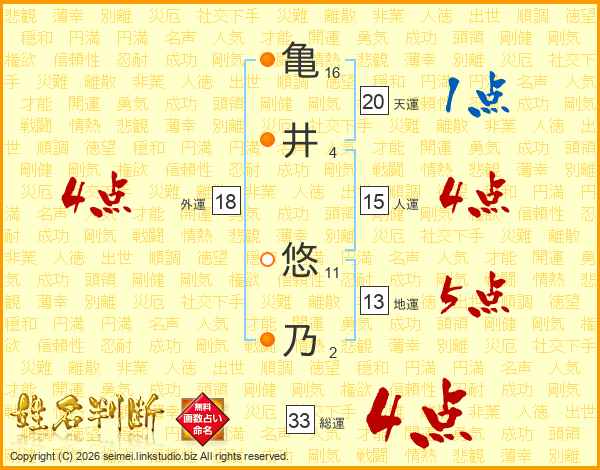 亀井悠乃さんの総運は33画の4点!
