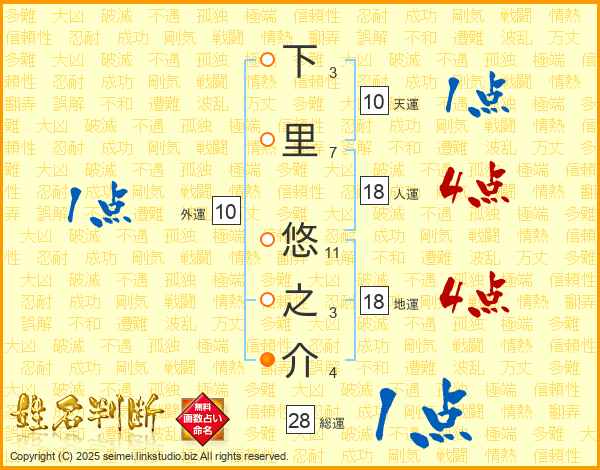 下(3画)里(7画) 悠(11画)之(3画)介(4画)