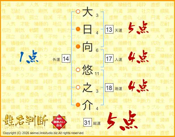 大日向悠之介さんの総運は31画の5点!