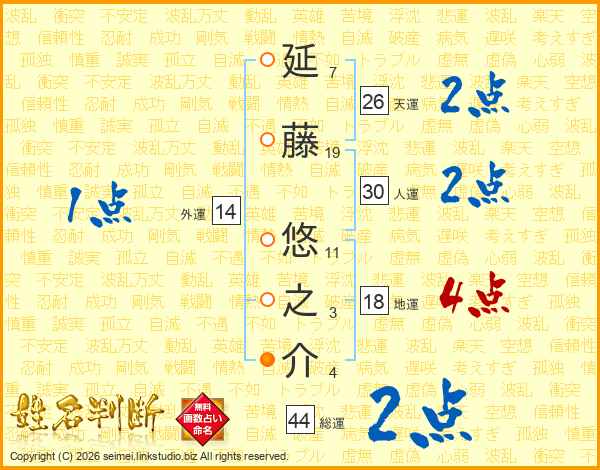 延藤悠之介さんの天運は26画の2点!