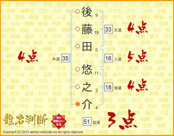 後藤田悠之介さんの天運は33画の4点!