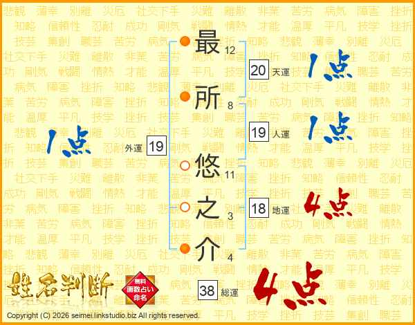 最(12画)所(8画) 悠(11画)之(3画)介(4画)