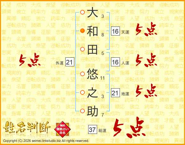 大和田悠之助さんの総運は37画の5点!