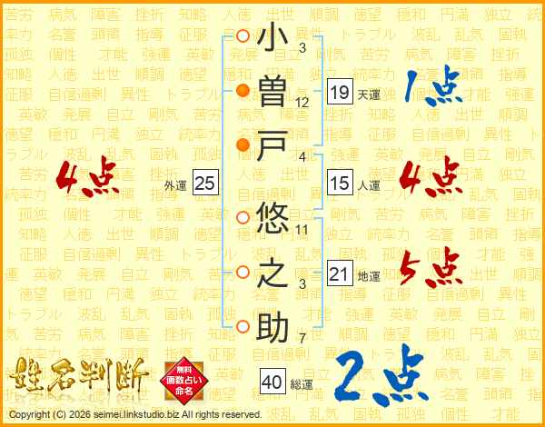 小曽戸悠之助さんの総運は40画の2点!