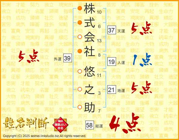株(10画)式(6画)会(13画)社(8画) 悠(11画)之(3画)助(7画)