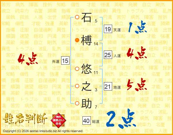 石(5画)榑(14画) 悠(11画)之(3画)助(7画)