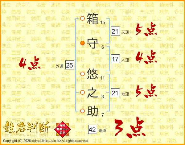 箱守悠之助さんの天運は21画の5点!