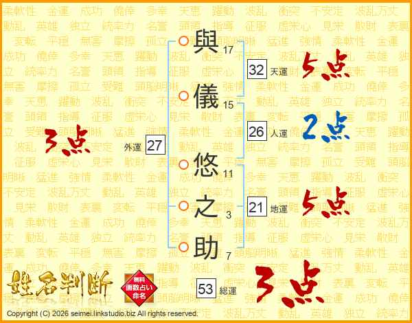 與儀悠之助さんの総運は53画の3点!