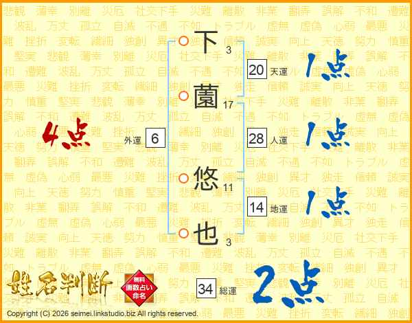 下薗悠也さんの総運は34画の2点!