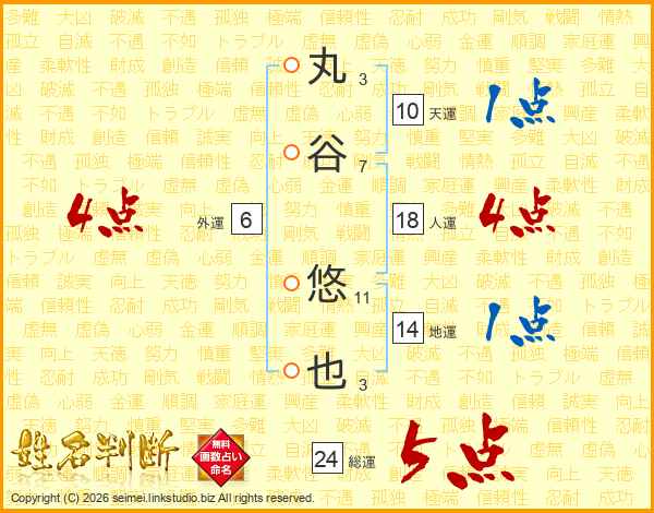 丸谷悠也さんの人運は18画の4点!