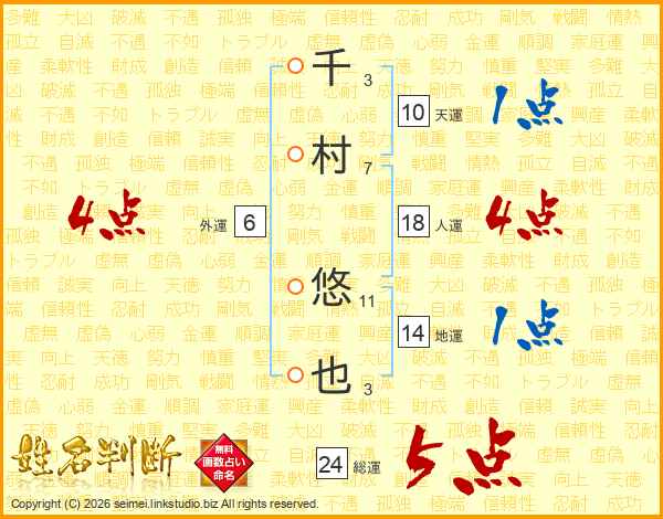 千村悠也さんの総運は24画の5点!
