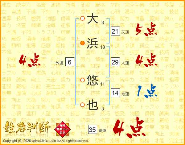 大浜悠也さんの総運は35画の4点!